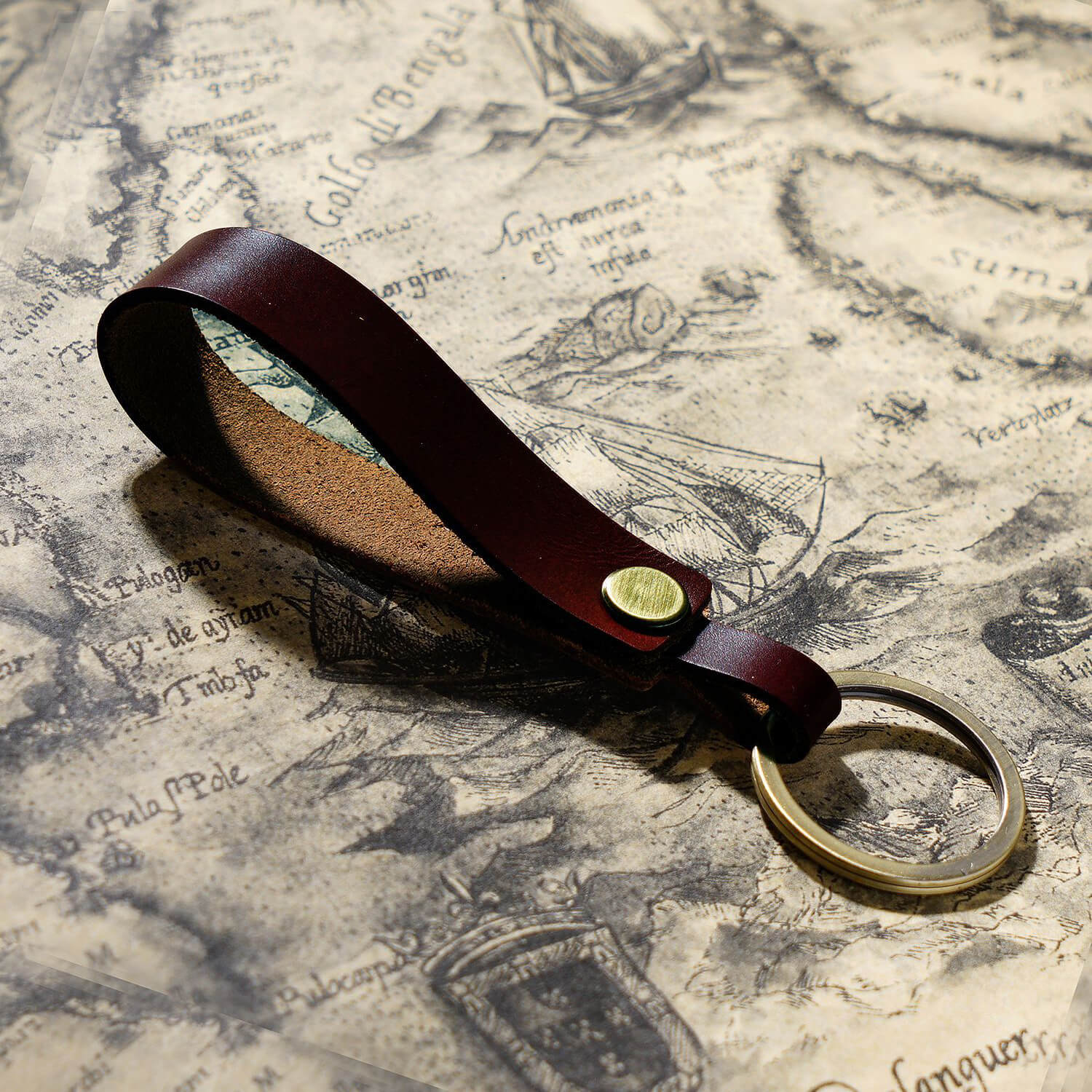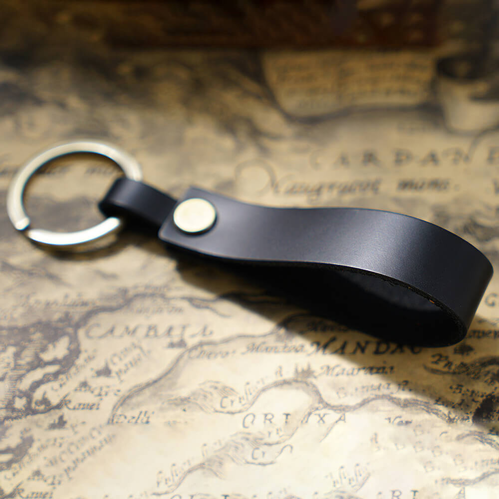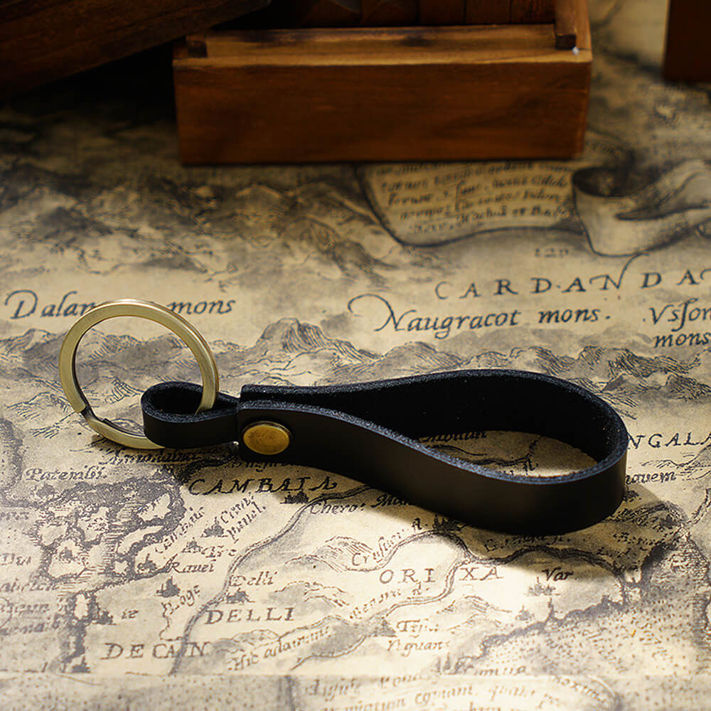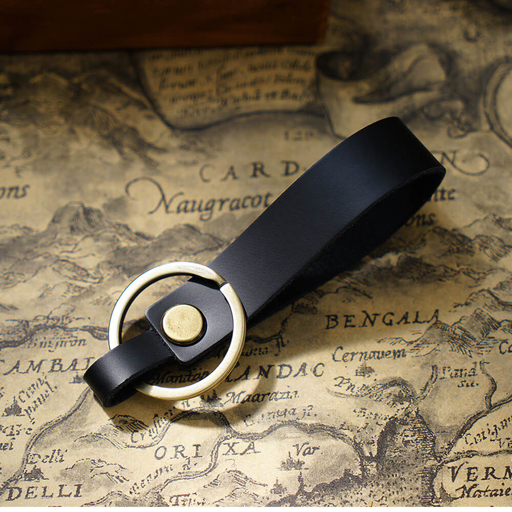 • Handgefertigter Schlüsselanhänger aus Vollnarbenleder mit tragbarem Anhängerband für Ohrhörer-Etui und Autoschlüssel