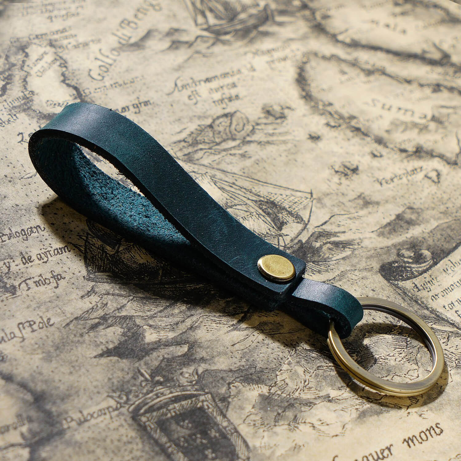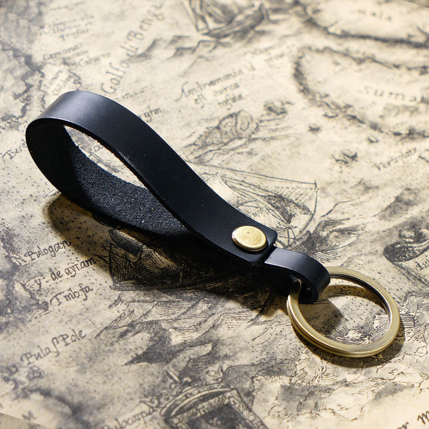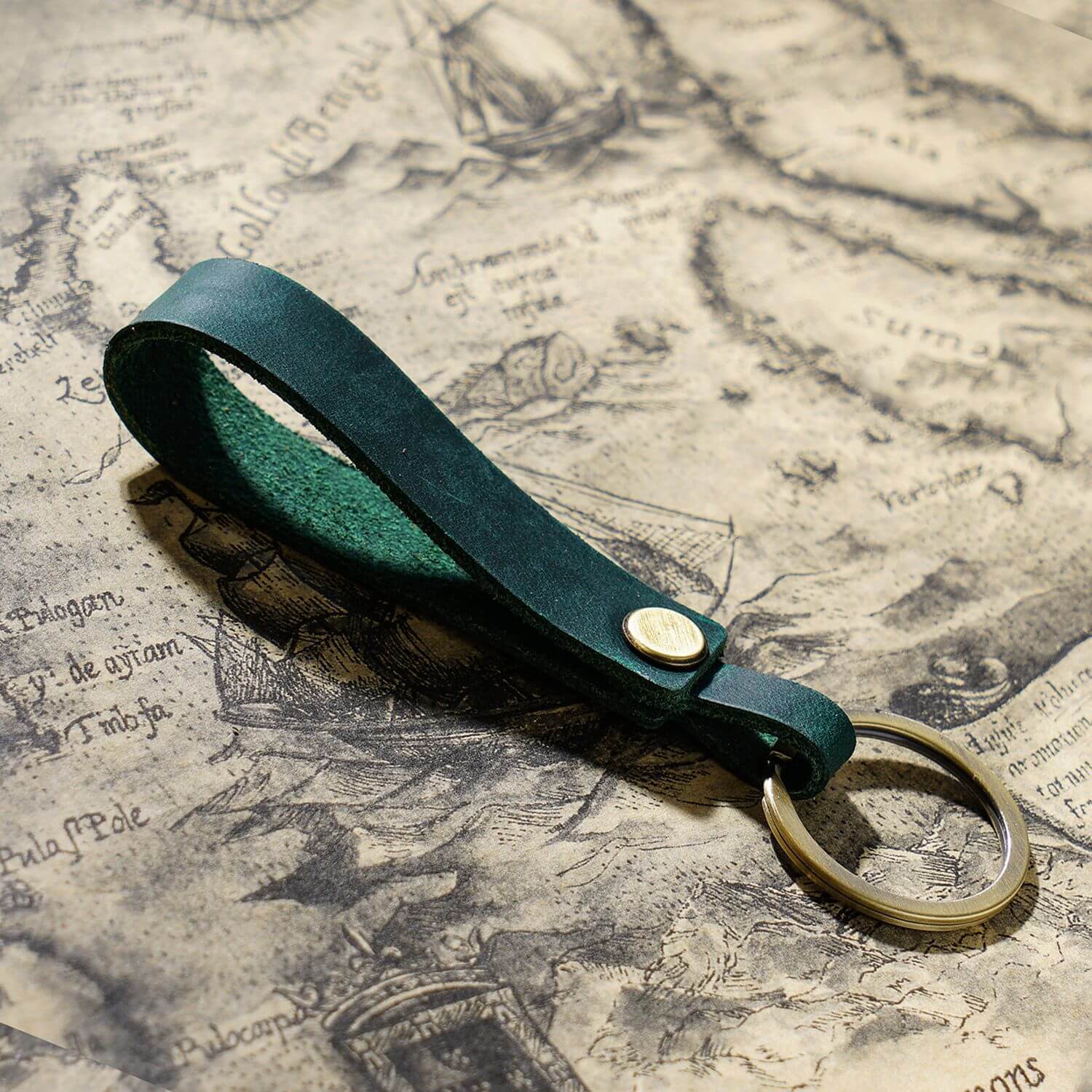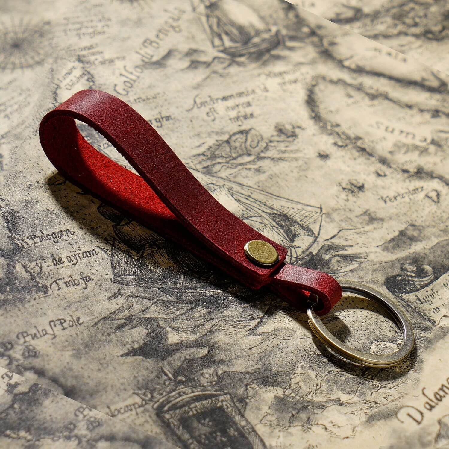• Handgefertigter Schlüsselanhänger aus Vollnarbenleder mit tragbarem Anhängerband für Ohrhörer-Etui und Autoschlüssel