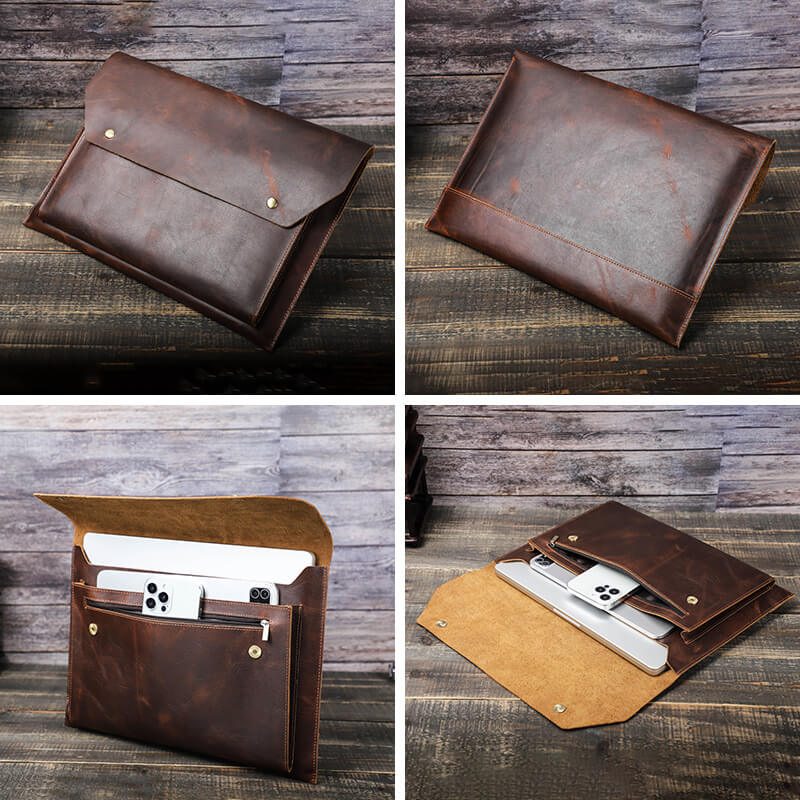 • ヴィンテージ風 本革製 多機能ノートパソコンスリーブケースApple iPad / MacBook Pro 14.2インチ/13.3インチ用