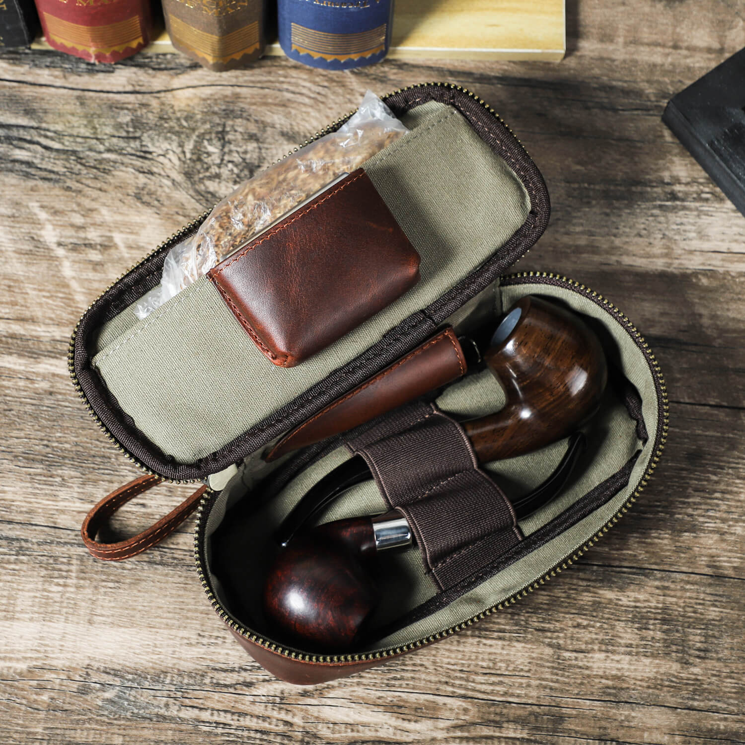 • Handcrafted Full-Grain Leather Pipe & Tobacco Pouch | Vintage Travel Case for Smoking Pipe, Tobacco, Lighter & Accessories