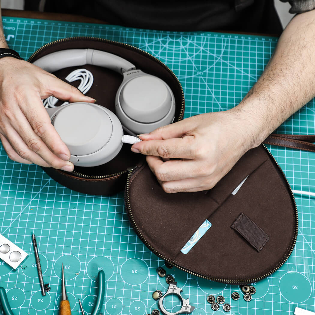 • Handmade Full Grain Leather Carrying Case for Sony WH-1000XM6 Series Headphones – Travel Storage Bag Case with Zipper Closure & Cable Organizer